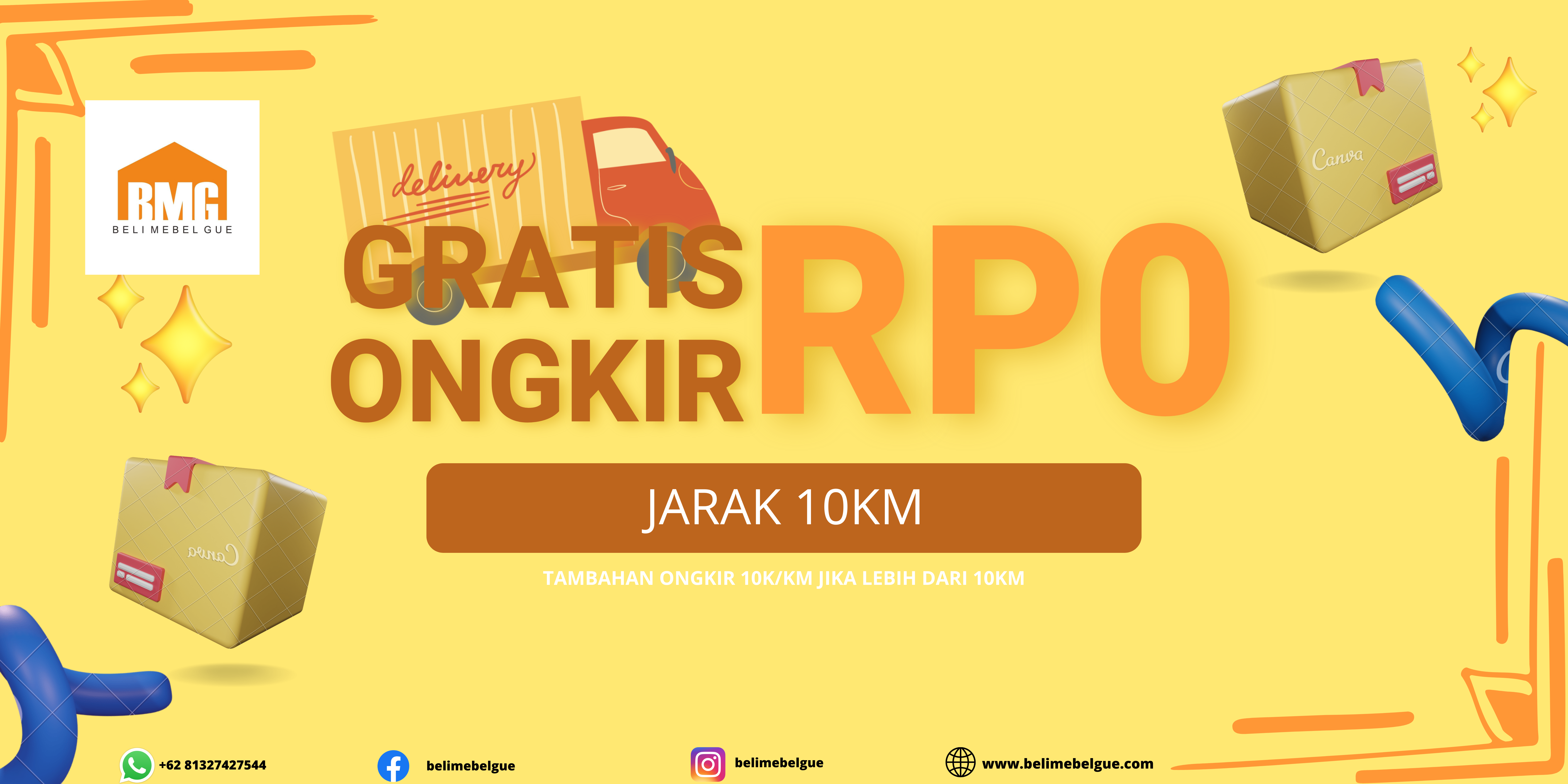 Free ongkir radius 15KM,jika lokasi tujuan melebihi 15KM,maka akan di kenakan biaya Rp.10.000/KM